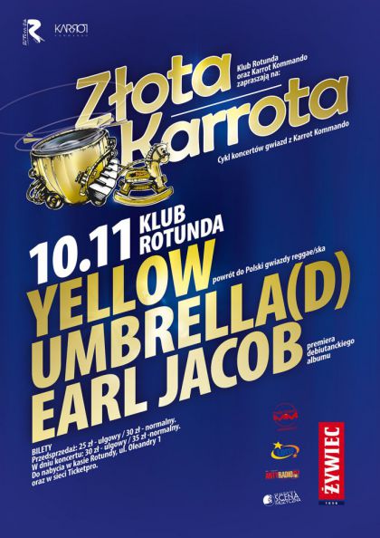 Klub Rotunda oraz Karrot Kommando zapraszają na koncert z cyklu "Złota Karrota", wystąpią Yellow Umbrella i Earl Jacob. Powrót to Polski gwiazd rocksteady/reggae/ska z Niemiec. Premiera płyty "Warto rozrabiać" Earl Jacoba.