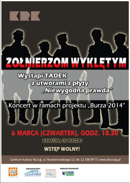 Podczas koncertu w Centrum Kultury „Ruczaj” usłyszymy utwory z wyżej wymienionej płyty, upamiętniające przede wszystkim żołnierzy wyklętych, tj. bohaterów zbrojnego podziemia antykomunistycznego, m.in.: rotmistrza Witolda Pileckiego, gen. Emila Fieldorfa czy Danutę Siedzikówną znaną pod pseudonimem „Inka”.