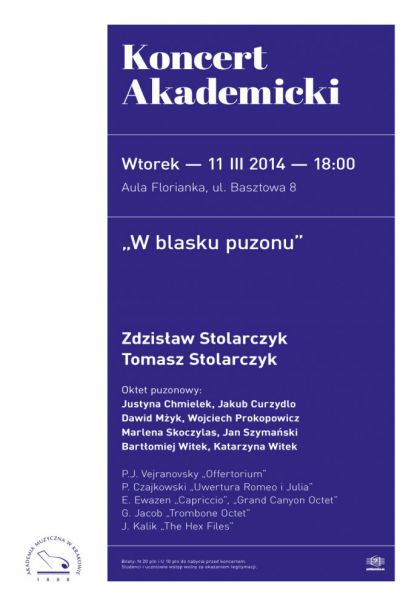 Jego motywem przewodnim będzie puzon. Na scenie ujrzymy oktet puzonowy, w którego skład wchodzą studenci Akademii Muzycznej w Krakowie. Młodzi adepci gry na tym instrumencie wystąpią wraz ze swoimi znakomitymi pedagogami: Zdzisławem i Tomaszem Stolarczykami, którzy oprócz działalności dydaktycznej współpracują m.in. z zespołem Golec uOrkiestra. W repertuarze koncertu znajdują się zarówno transkrypcje utworów muzyki klasycznej, jak również kompozycje stworzone na taką obsadę.