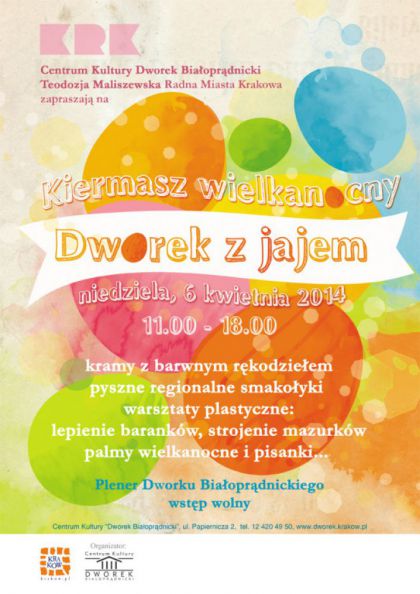 Począwszy od godziny 11:00 plener Dworku Białoprądnickiego należeć będzie do wystawców prezentujących przepiękne wyroby rękodzielników, rzemieślników i twórców ludowych. Pojawią się stroiki wielkanocne, koszyki, świeczki, pisanki, obrusy świąteczne, wyroby regionalne… Na stoiskach nie zabraknie też specjałów kulinarnych z różnych zakątków regionu Małopolski, nawet spod gór.