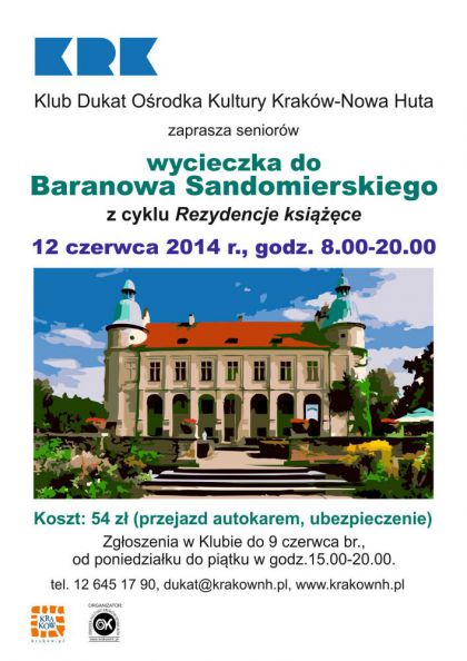 Kolejna wycieczka z cyklu Rezydencje książęce, organizowana przez Klub Dukat Ośrodka Kultury Kraków-Nowa Huta (ul. Styczna 1). Wycieczka odbędzie się 12 czerwca w godz. 8.00-20.00.