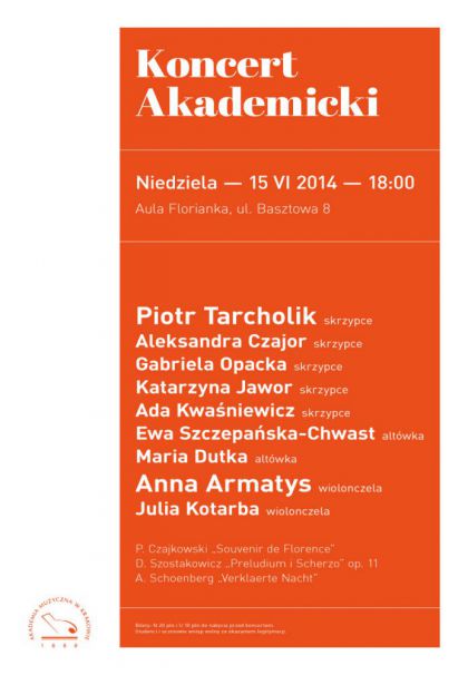 W ramach Koncertów Akademickich organizowanych przez Akademię Muzyczną w Krakowie, w najbliższą niedzielę 15 czerwca 2014 o godz. 18:00 w Auli Florianka (ul. Basztowa 8) wystąpią krakowscy kameraliści: