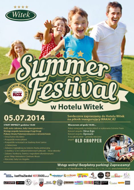 Summer Festival odbędzie się już 5 lipca tuż obok Centrum Hotelowo- Konferencyjnego Witek **** w Krakowie. Podczas trwania imprezy na dzieci oraz dorosłych będą czekać liczne atrakcje, m.in.: