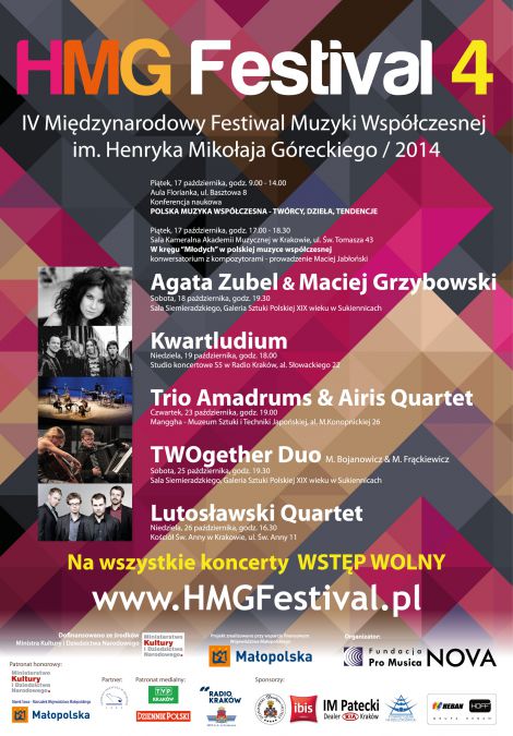 Serdecznie zapraszam Państwa na IV edycję Międzynarodowego Festiwalu Muzyki Współczesnej im. Henryka Mikołaja Góreckiego.