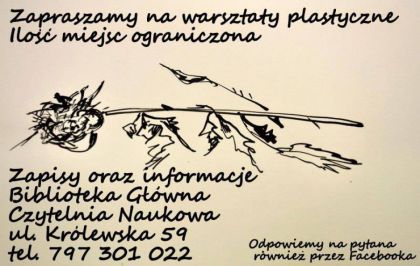 Od kilku lat prowadzimy warsztaty plastyczne. Koszt warsztatów jest niewielki. To tylko pokrycie kosztów za materiały używane podczas warsztatów. Zainteresowanych prosimy o kontakt telefoniczny: 797 301 022. Ilość miejsc ograniczona.