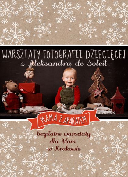 Aleksandra de Soleil, współzałożycielka Akademii Fotografii Dziecięcej - największej w Polsce szkoły fotografowania dzieci zaprasza na bezpłatne mini warsztaty świątecznego fotografowania dzieci.
