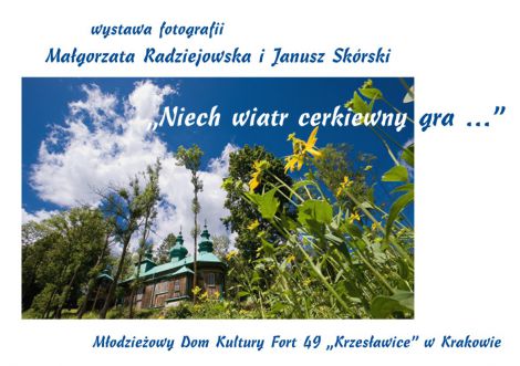 „Niech wiatr cerkiewny gra …” w terminie od 10 grudnia 2014 do 15 stycznia 2015 w Młodzieżowym Domu Kultury Fort 49 "Krzesławice", os. Na Stoku 27b będzie prezentowana wystawa Małgorzaty Radziejowskiej oraz Janusza Skórskiego. Wernisaż wystawy odbędzie się 10 grudnia 2014 r., o godz. 18:00. W programie artystycznym występ Pawła Hutyry.