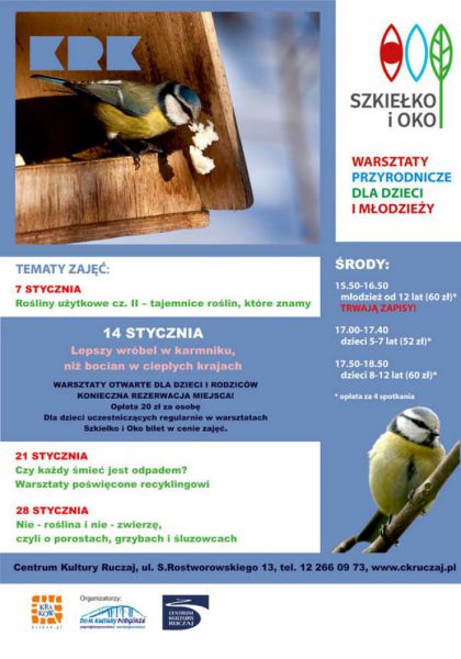 Część zwierzaków przesypia zimę, część odlatuje do cieplejszych krajów, ale część zostaje, między innymi w naszych ogródkach i parkach. Czy sikora poradzi sobie w mroźne dni? Czy mogę ją nakarmić? I czy tym samym mogę nakarmić kosa albo dzięcioła? Na zajęciach dzieci poznają najczęstszych gości karmników. Dowiedzą się także, kiedy i czym dokarmiać ptaki i przygotują własną kulę tłuszczową dla ptaków.