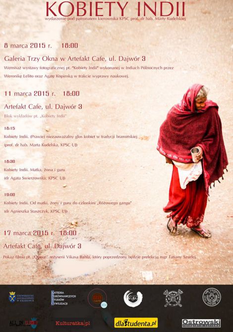 Wykłady odbędą się 11 marca 2015 r. o godzinie 18:00 w Artefakt Cafe przy ul. Dajwór 3 w Krakowie. Wykłady towarzyszą wystawie fotograficznej pt. „Kobiety Indii”.