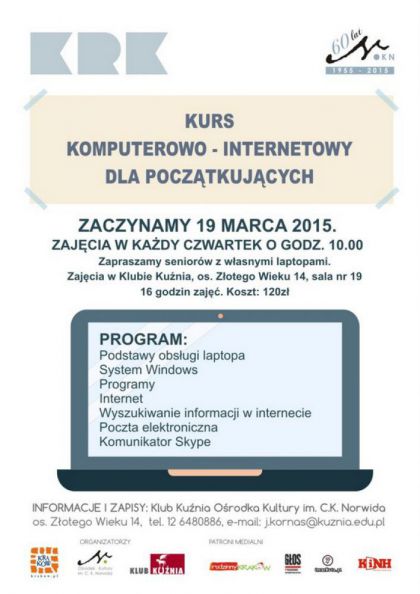 Klub Kuźnia Ośrodka Kultury im. Norwida, os. Złotego Wieku 14, tel. 12 6480886, e-mail: j.kornas@kuznia.edu.pl