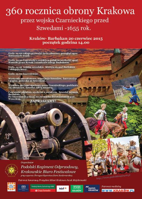 Muzeum Historyczne Miasta Krakowa, Polski Regiment Odprzodowy, Krakowskie Biuro Festiwalowe oraz Chorągiew Rycerstwa Ziemi Sandomierskiej serdecznie zapraszają na