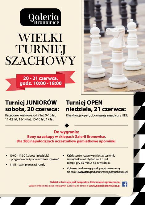 Regulamin Weekendowego Turnieju Szachowego w Galerii Bronowice dostępny jest na www.galeriabronowice.pl i www.mzszach.krakow.pl