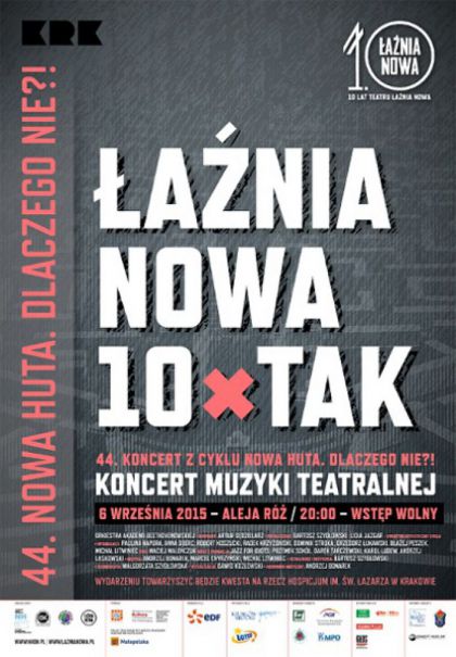 Już 6-ego września br. nowohucka Aleja Róż stanie się sceną dla wielkiego, multimedialno-muzycznego widowiska. W ramach cyklu Nowa Huta. Dlaczego Nie?! odbędzie się wydarzenie Łaźnia Nowa – 10 x TAK – koncert będący z jednej strony sentymentalną podróżą po historii teatru, z drugiej - wspaniałym artystycznym przeżyciem.