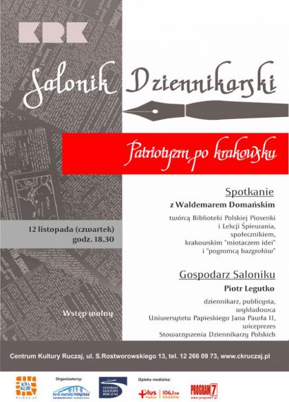 Centrum Kultury "Ruczaj" zaprasza na spotkania i dyskusje z ciekawymi osobowościami, celebrytami, politykami i znanymi ekspertami w ramach Saloniku Dziennikarskiego.