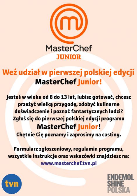 Do wzięcia udziału w programie zapraszamy wszystkie dzieci w wieku od 8 do 13 lat, które lubią gotować i nie boją się wyzwań. Pierwszy casting odbędzie się już 22 listopada w Krakowie.