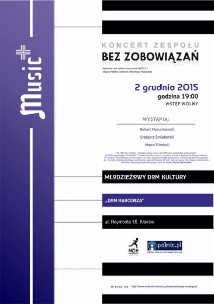 Ścieżki ich zetknęły się w 1995 roku w chatce na Niemcowej w Beskidzie Sądeckim i jak do tej pory nierozerwalnie przeplatają się muzycznie tworząc nieformalną grupę "Bez Zobowiązań" mającą na swym koncie utwory poezji śpiewanej do tekstów własnych jak i innych, mniej i bardziej znanych poetów. Wydali płytę "Szałasolot" choć materiału uzbierało się na więcej. Mają nadzieję, że jeszcze zostaną wydane. Może nadzieję tę podziela nawet paru fanów i fanek...