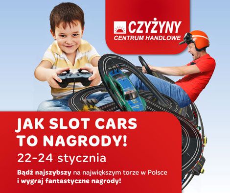 W dniach 22 - 24 stycznia 2016 roku w Centrum Handlowym CZYŻYNY pojawi się największy w Polsce tor SLOT CARS. Tor o długości 50 metrów to okazja do sprawdzenia się w roli kierowcy rajdowego i możliwość rywalizacji z innymi graczami. Dla najlepszych zawodników przewidziano atrakcyjne nagrody.