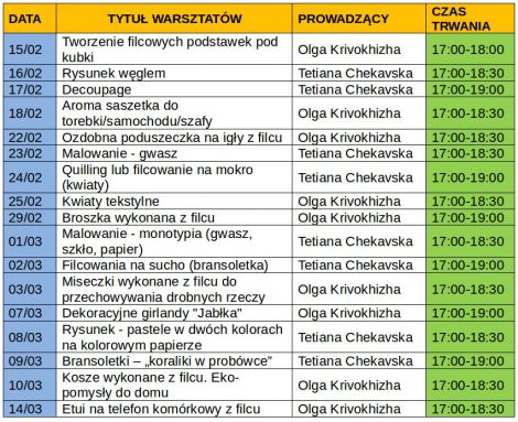 | Warsztaty artystyczne |