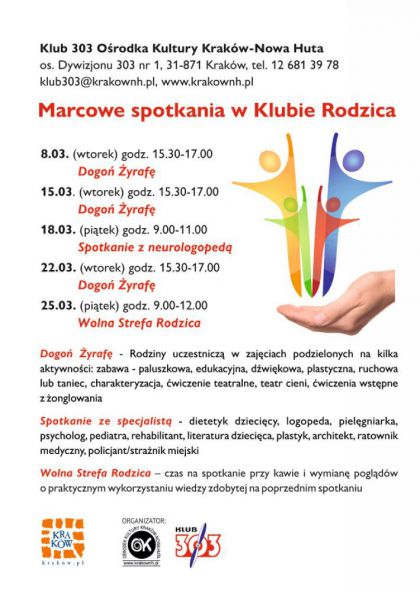 Zajęcia odbędą się 15 marca w godz. 15.30-17.00. Informacje o Klubie Rodzica pod nr 12 681 39 78.