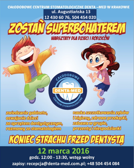 Całodobowe Centrum Stomatologiczne DENTA - MED w Krakowie zaprasza wszystkie dzieci i ich rodziców na BEZPŁATNE warsztaty dentystyczne połączone z zabawą w grupie.
