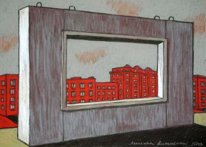 Genius loci Nowej Huty pozwala artyście odnaleźć w niej wielowarstwową inspirację: socrealistyczną architekturą, wplecionymi w nią losami ludzi i kontekstem historycznym. Ślad po utopijnej koncepcji miasta idealnego, najpierw sztandarowe osiągnięcie Planu Sześcioletniego, chluba propagandy PRL-u, po upadku komunizmu, stało się trochę miejscem zakazanym, postrzeganym, jako relikt byłej epoki. Zafascynowana miejscem, trochę z przekory odkryłam je na nowo. Analiza minionego czasu z dzisiejszej perspektywy pozwoliła mi dostrzec w Nowej Hucie to, co trwałe, niezmienne, stanowiące o jej niepowtarzalnym charakterze i oceniane, przez jej dzisiejszych mieszkańców, jako wartość. W swoich rysunkach starałam się też pokazać nowohucki pejzaż i jego budynki w różnych momentach jej historii, tak, aby widz mógł skonfrontować zmiany, jakim podlegały z wyodrębnić najbardziej charakterystyczne i niezmienne cechy.