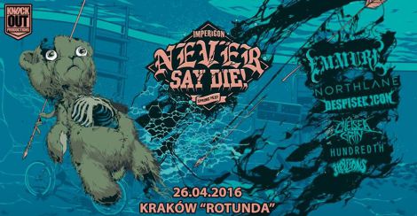Knock Out Productions prezentuje trasę Never Say Die! w ramach, której 26.04.2016 w krakowskiej Rotundzie wystąpi Emmure, któremu towarzyszyć będą: Northlane, Despised Icon, Chelsea Grin, Hundredth, Hellions. Zapowiada się wieczór pełen deathcore’owej jazdy, metalcore’owych melodii i hardcore’owego klimatu. EMMURE (USA) deathcore, metalcore, groove metal: Wielbiciele deathcore’u powitają tę wiadomość z radością – ponownie do Polski zawita amerykańska załoga Emmure, którą niezmiennie dowodzi kontrowersyjny wokalista Frankie Palmeri. Zabawa polega na tym, że w 2015 roku pożegnali się z nim wszyscy dotychczasowi koledzy i póki co nie wiadomo, kto będzie wokaliście towarzyszył na scenie. Frank jak to Frank, nie załamał się decyzją kolegów, z którymi nagrał wydany w 2014 roku krążek „Eternal Enemies”. Już ma nowy skład, aczkolwiek tożsamości nowych członków Emmure do tej pory nie ujawnił, i pracuje nad nowymi piosenkami! Jednego można być pewnym – Palmeri na żadne kompromisy nie pójdzie, znów będzie wkładał kij w mrowisko, szokował. A na żywo da takiego czadu, że będziecie błagać, aby wrócił do nas jak najszybciej. Sprawdź, jeśli lubisz: Suicide Silence, Chelsea Grin, Whitechapel, Carnifex…