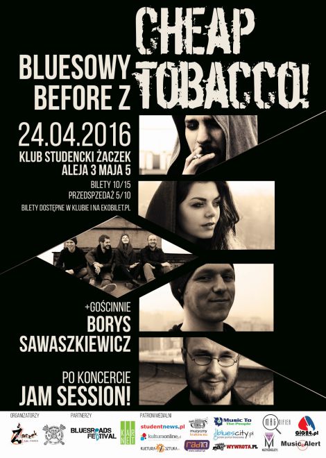 Bilety dostępne w klubie i na EKOBILET https://ekobilet.pl/klub-zaczek/bluesowy-before-z-cheap-tobacco--1459852855/158197-bilety-na-koncert