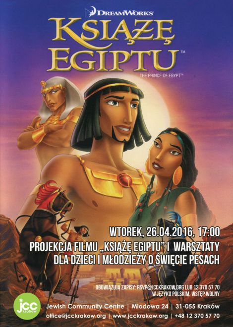 Zapraszamy do Centrum Społeczności Żydowskiej - JCC Krakow (Miodowa 24) na projekcję filmu „Książę Egiptu” oraz warsztaty dla dzieci