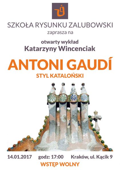 Szkoła Rysunku Zalubowski, podobnie jak było to w latach poprzednich, na rok szkolny 2016/2017 przygotowała program otwartych wykładów poświęconych design’owi, sztuce i architekturze. Pragniemy serdecznie zaprosić Państwa na wykład Katarzyny Wincenciak pt. " Antoni Gaudí i styl kataloński ", który odbędzie się w dniu 14.01.2017 o godzinie 17.00 w krakowskiej siedzibie Szkoły przy ulicy Kącik 9 (1 piętro).