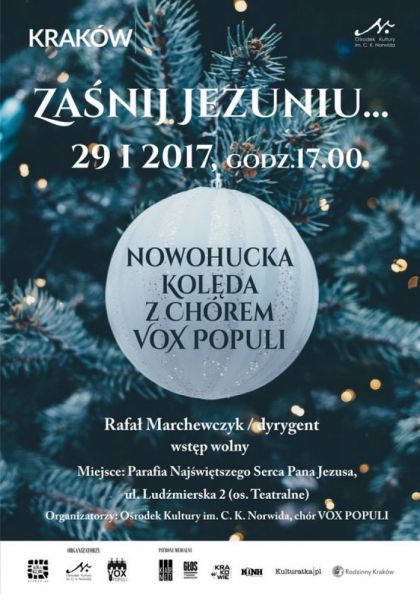 Ośrodek Kultury im. C. K. Norwida oraz Chór Vox Populi zapraszają na koncert i wspólne kolędowanie z chórem pod dyrekcją prof. Rafała Marchewczyka.