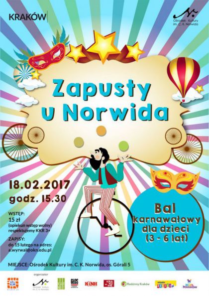 Karnawał to wspaniały, radosny czas. Tańce, hulańce i zabawy do białego rana - dorośli dobrze to znają :) Ale co z dziećmi? Co one wiedzą o karnawale? Postanowiliśmy przybliżyć im nieco tę tradycję i zaprosić na bal karnawałowy do Norwida! Zapowiada się najlepsza impreza dla dzieci w Krakowie! Kolorowe stroje, muzyka i moc zabawy pod okiem najfajniejszych animatorów zabaw dziecięcych.