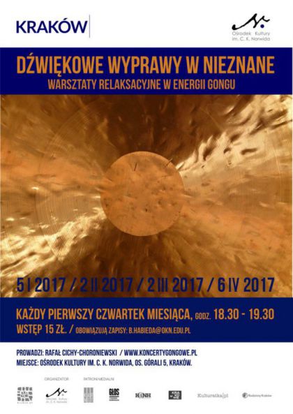 Prosimy także pamiętać o przeciwwskazaniach w uczestniczeniu w koncertach gongów. Są nimi: ciąża, rozrusznik serca, epilepsja, przyjmowanie leków psychotropowych oraz stan po spożyciu alkoholu.