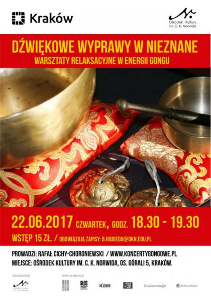 Uczestników prosimy o przyniesienie własnych mat i koców, na których będzie można się położyć i w pełni skorzystać z działania dźwięku.