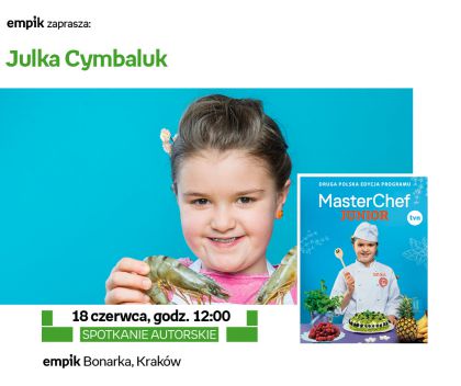 Popularny telewizyjny show „MasterChef Junior” już po raz drugi wyłonił zwycięzcę. Prezentując swoje ponadprzeciętne zdolności i zamiłowanie do gotowania, tytuł najmłodszej i najlepszej kucharki w Polsce otrzymała Julka Cymbaluk. Z okazji premiery książki kucharskiej „MasterChef Junior. Druga polska edycja programu” (Wydawnictwo Burda Publishing Polska) autorka spotka się z czytelnikami 18 czerwca w salonie Empik Bonarka w Krakowie.