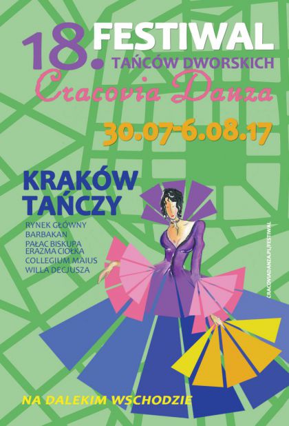 18. Festiwal Tańców Dworskich „Cracovia Danza” odbędzie się w dniach 30 lipca – 6 sierpnia w Krakowie. Tegoroczna edycja, zatytułowana Na Dalekim Wschodzie, zwrócona będzie w stronę Azji. Jak zwykle do Krakowa przyjedzie międzynarodowe grono tancerzy, którzy wezmą udział w plenerowych spektaklach, pokazach oraz warsztatach tańców dawnych z całego świata. Motywem przewodnim festiwalu stanie się wachlarz, rekwizyt pełniący niezwykle ważną rolę w tańcach i choreografiach w różnych stylach i epokach.