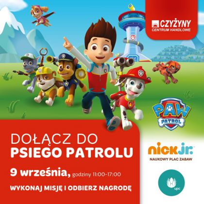 Każde dziecko, które przyjdzie 9 września do Centrum Handlowego Czyżyny będzie mogło odebrać kartę sprawności, w której gromadzić będzie pieczątki za wykonanie zadań przygotowanych przez bohaterów „Psiego Patrolu”. Po zakończonej zabawie kartę sprawności będzie można wymienić na pamiątkowy dyplom i przypinkę.