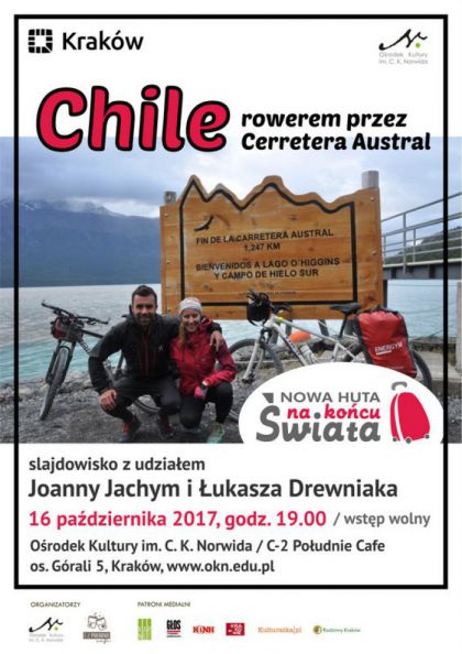 Zapraszamy do Ośrodka Kultury im. C. K. Norwida na slajdowisko Joanny Jachym i Łukasza Drewniaka pn. „Chile - rowerem przez Cerretera Austral”.