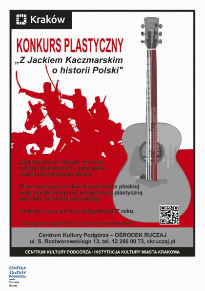 Zapraszamy dzieci i młodzież do udziału w konkursie plastycznym „Z Jackiem Kaczmarskim o historii Polski" organizowanym z okazji 60-tej rocznicy urodzin Jacka Kaczmarskiego. Chcemy, aby jego piosenki stały się inspiracją do działań plastycznych.