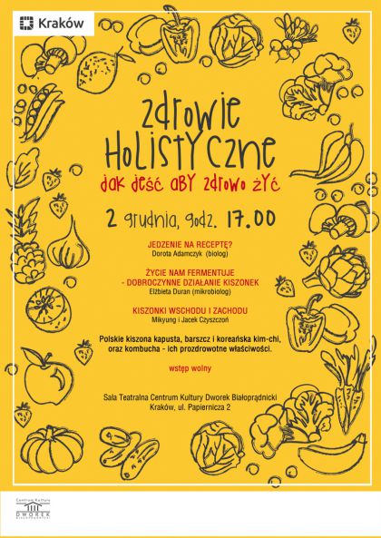 Czy wiecie jak jeść, żeby zdrowo żyć? To prostsze niż myślicie! Jeśli chcecie dowiedzieć się więcej, przyjdźcie w najbliższą sobotę, 2 grudnia o godz. 17.00 do Centrum Kultury Dworek Białoprądnicki. Poza porcją zdrowiej wiedzy, będziecie mogli spróbować polskich i koreańskich, zdrowych przysmaków. Sala Teatralna, ul. Papiernicza 2. Wstęp wolny.