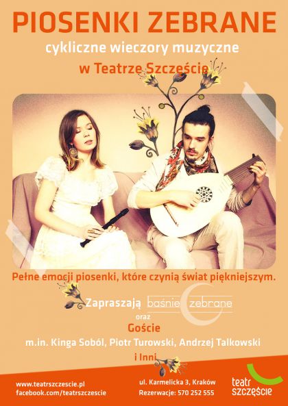 „Piosenki zebrane” to cykliczne wieczory muzyczne w Teatrze Szczęście, na które zapraszają Baśnie Zebrane oraz Goście.