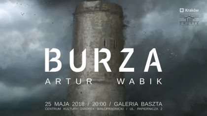 „Burza” to audio-wizualna instalacja site-specific, zrealizowana w kontekście nowej krakowskiej przestrzeni wystawienniczej. Uczestnicy wernisażu wezmą udział w jednorazowym wydarzeniu o charakterze performatywnym.