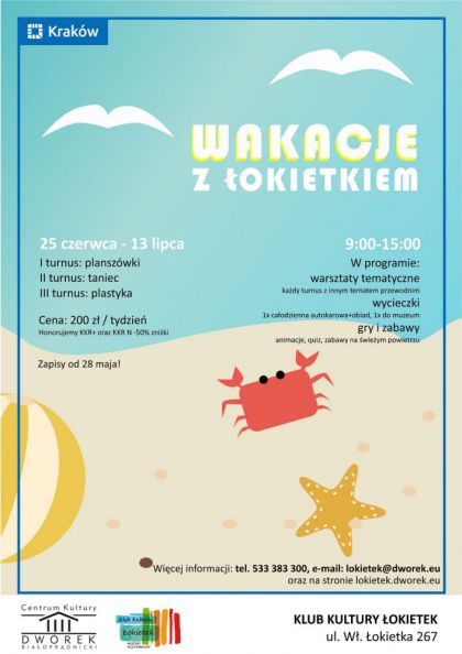Przekonajcie się razem z nami, że lato w mieście nie musi być nudne! Zapraszamy dzieci w wieku 7-13 lat (roczniki 2011-2005) do uczestnictwa w półkolonii na początku wakacji. Przygotowaliśmy trzy turnusy z trzema zupełnie różnymi tematami przewodnimi. Dobierzcie je do zainteresowań i temperamentu swojego dziecka, a my się postaramy żeby codziennie uśmiech nie schodził mu z twarzy :)