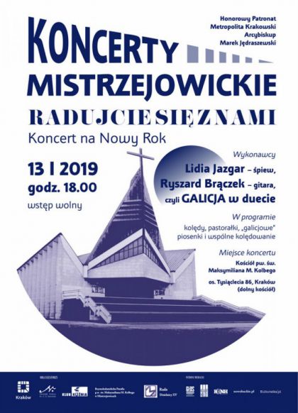Koncert w wykonaniu duetu: Lidia Jazgar (śpiew) i Ryszard Brączek (gitara). W programie kolędy, pastorałki oraz „galicjowe” piosenki. Wstęp wolny.