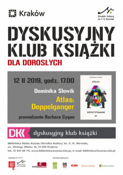 Spotkanie poświęcone książce Dominiki Słowik pt. „Atlas: Doppelganger”. Prowadzi Barbara Cygan. Wstęp wolny.
