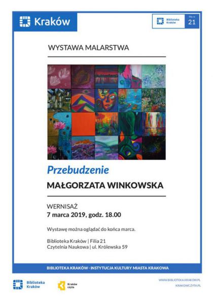 Małgorzata Winkowska – z wykształcenia anglistka, z zamiłowania malarka, fotograf i tancerka. Mieszka w Krakowie i jest wykładowcą na Uniwersytecie Pedagogicznym. Maluje od ponad 2 lat, ale pomimo krótkiego okresu zajmowania się malarstwem, może pochwalić się dość dużym dorobkiem artystycznym. Miała cztery wystawy indywidualne oraz uczestniczyła w trzech wystawach zbiorowych.