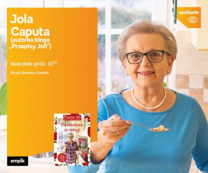 Przepisy Joli to więcej niż blog i profil na Facebooku – to już instytucja. A teraz ponad pół miliona fanów cudownie smacznej domowej kuchni, w ciepłym, rodzinnym wydaniu Joli Caputy, dostanie także książkę. Odpowiada ona na pytanie, które każdy zadaje sobie niemal codziennie: co tym razem przygotować na śniadanie, obiad i kolację dla bliskich? W książce „Przepisy Joli. Od śniadania do kolacji” (Edipresse Książki) znajdują się dostosowane do pory roku nieskomplikowane przepisy z propozycjami śniadań, obiadów i kolacji tworzące tygodniowe menu dla całej rodziny. Każdy z zaproponowanych przepisów powstał specjalnie na potrzeby tej książki i nie można znaleźć go na blogu. Z ich pomocą przygotowanie urozmaiconych, prostych i szybkich posiłków stanie się banalnie proste. Książka pozwoli też na zrobienie racjonalnych, oszczędzających czas i pieniądze zakupów. W kuchni Joli Caputy nic się nie marnuje. Kilka kulinarnych sekretów Jola Caputa zdradzi zapewne także podczas spotkania.