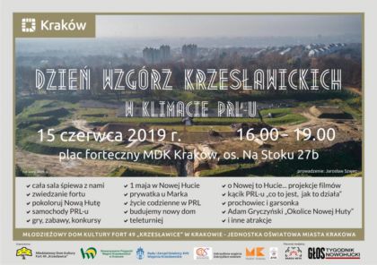 Młodzieżowy Dom Kultury Fort 49 „Krzesławice” zaprasza na zwiedzanie fortu artyleryjskiego, dawnej części Twierdzy Kraków oraz obejrzenia miejsc na co dzień niedostępnych dla gości – takich jak: koszary, schrony i podziemny korytarz. Fort 49 „Krzesławice” zlokalizowany jest na obecnym terenie nowohuckiego osiedla Na Stoku przy ulicy Architektów. Po Forcie 49 „Krzesławice” oprowadzi Dyrektor MDK – Franciszek Dziadoń.