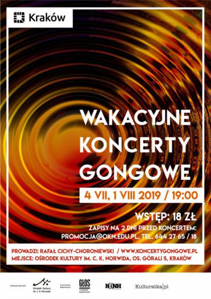 Relaks dla ciała i radość dla duszy to w jednym zdaniu cel udziału w koncercie gongowym. Wrażenia dostarczane słuchaczom przez dźwięki gongu są jedyne w swoim rodzaju, niepowtarzalne i nieporównywalne z niczym innym. Prowadzi Rafał Cichy-Choroniewski / www.koncertygongowe.pl.