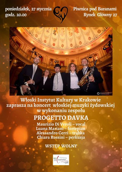 Włoski Instytut Kultury w Krakowie zaprasza na koncert włoskiej muzyki hebrajskiej w wykonaniu zespołu PROGETTO DAVKA