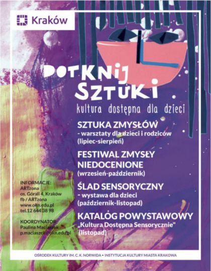 Na przełomie września i października odbędzie się festiwal „ZMYSŁY NIEDOCENIONE”. Organizatorzy kierują go w szczególności do rodzin z dziećmi o specjalnych potrzebach sensorycznych, ale także do specjalistów pracujących z dziećmi w instytucjach kulturalnych. Uczestnicy poznają zasady i dobre praktyki tworzenia zabaw i zajęć przyjaznych sensorycznie. W kolejnych miesiącach powstanie absolutnie wyjątkowa, interaktywna i pełna sensorycznych elementów wystawa. Podczas jej zwiedzania dzieci zostaną zaproszone do współtworzenia i doświadczania sztuki w bezpośrednim kontakcie. Zwieńczeniem projektu będzie wydanie katalogu „KULTURA DOSTĘPNA SENSORYCZNIE”.